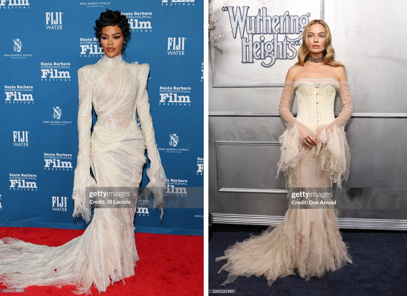 The famous women yearn to be Victorian ghosts. They want to transform into the phantom of a sea wench so badly because these are some Davy Jones locker-ass dresses. I was already going to touch upon Teyana Taylor’s Ashi Studio Spring 2026 Couture gown, and then imagine my surprise when I saw Margot Robbie rocking the same bedraggled sleeve and hemline ALSO by Ashi Studio but custom, which feels like a funny plagiarizing your own homework moment.