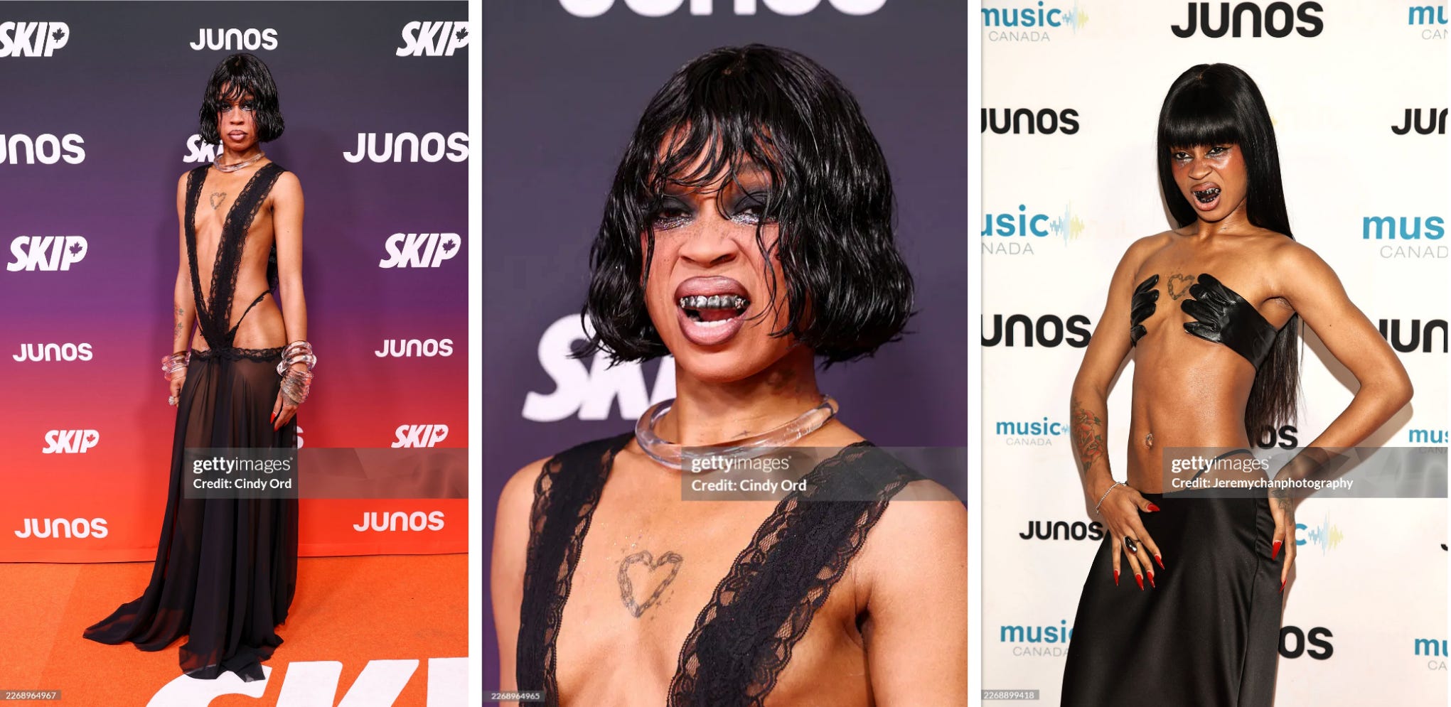 Anyway, the gown she wore to the Junos was pretty standard sex shop attire imo, but I must applaud anyone attempting to do a sensuous take on Borat’s mankini. And I think what ultimately makes this fit compelling for me anew is the juxtaposition between this overexposed garment and the more sinister styling with the wet hair, glittery double black eye, and Chrome Hearts-inspired grill without a stitch of bling. It’s goth with a video vixen twist. I also enjoyed the dress she changed into for the award show, although I do wish the phantom hands clutching her chest were much more convincingly robust. Even so, it’s very reminiscent of designs we’ve seen from Schiaparelli and Robert Wun lately and, most notably to my elder millennial mind, that collection Yoko Ono made with Opening Ceremony that I honestly can’t believe we haven’t seen anyone famous revive from the archives as it was actually 60 years ahead of its time.