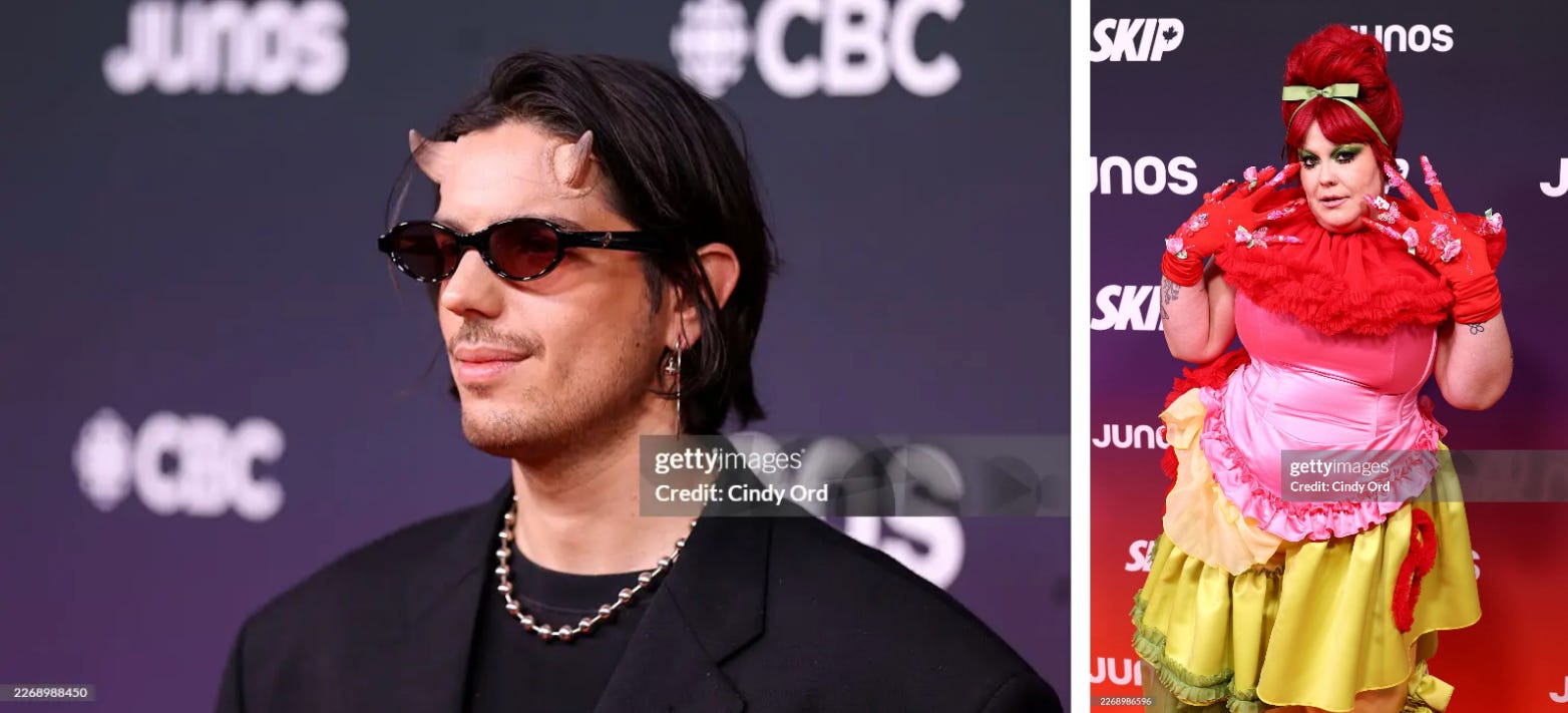 But I think my absolute favorite look from the Canadian Grammys has to go to Hayley Gene Penner who brought along her baby as the ultimate accessory. There is something so iconic to me about these being the only two images that exist of this woman at this event. It is communicating loud and clear that this is a work function that she has deigned to bless with her and her child’s presence. Her attendance is perfunctory. The baby’s noice canceling headphones likewise confirm this is merely a short pit stop in their night of familial revelry. Divas all around.